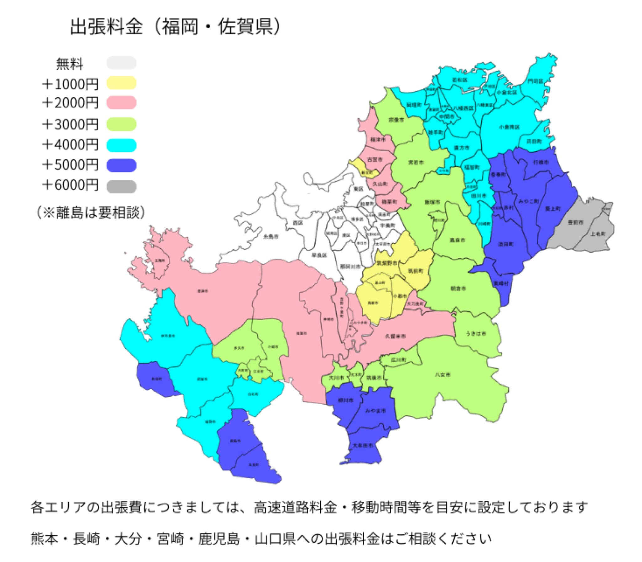 お墓参り、お墓掃除代行の出張範囲は基本的に福岡県内となっております。